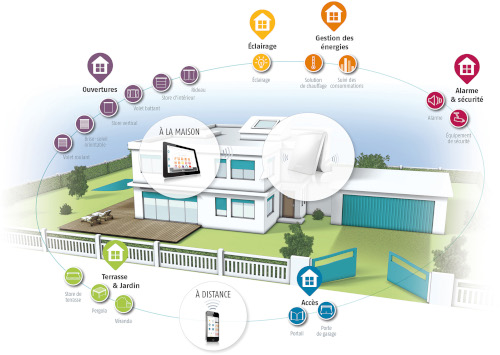 Grâce à la tahoma de Somfy vous avez une passerelle entre votre maison et votre portable partout dans le monde.